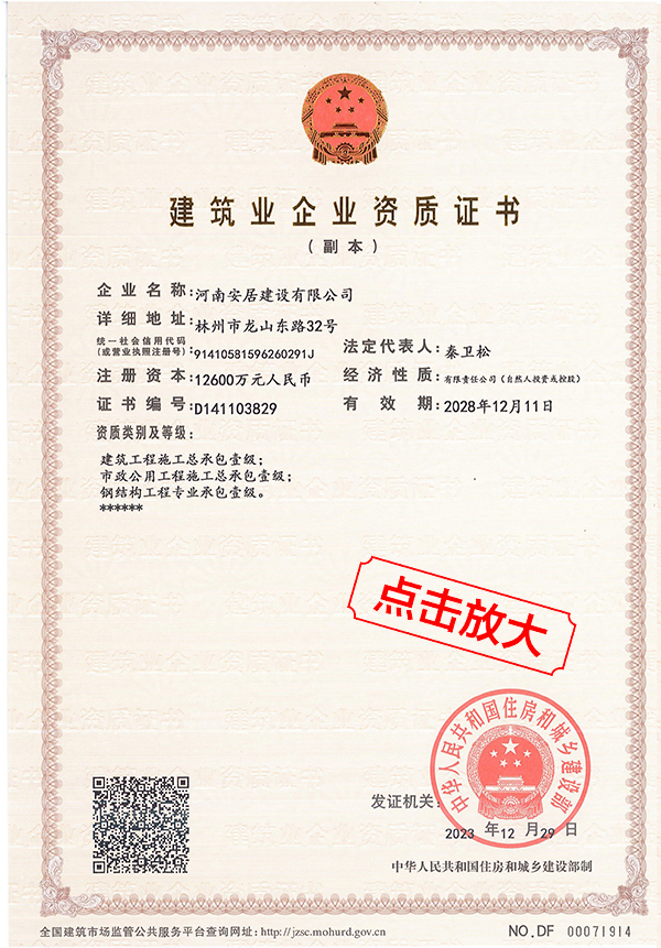 滔滔黃河哺育了中華民族拼搏向上的奮斗精神,巍巍太行造就了中原兒女的紅旗渠精神。百萬林州人下太行,鑄就了中國建筑之鄉(xiāng)響當(dāng)當(dāng)?shù)囊燮放?。河南安居建設(shè)有限公司從誕生起血液里就流淌著紅色基因,秉承“安得廣夏千萬間,大庇天下寒士俱歡顏”的擔(dān)當(dāng)精神,用鋼筋混凝土筑起了高樓大廈,也用一流品質(zhì)、家國情懷打造了安居建設(shè)的輝煌成績。公司成立于2012年,注冊資金12600萬元,公司成立至今,擁有建筑,市政施工總承包等十項(xiàng)一級資質(zhì);其他二級等資質(zhì)共二十余項(xiàng)。公司秉承質(zhì)量第一,服務(wù)為主,堅(jiān)持垂直管理,從不設(shè)立分公司等分支機(jī)構(gòu)。